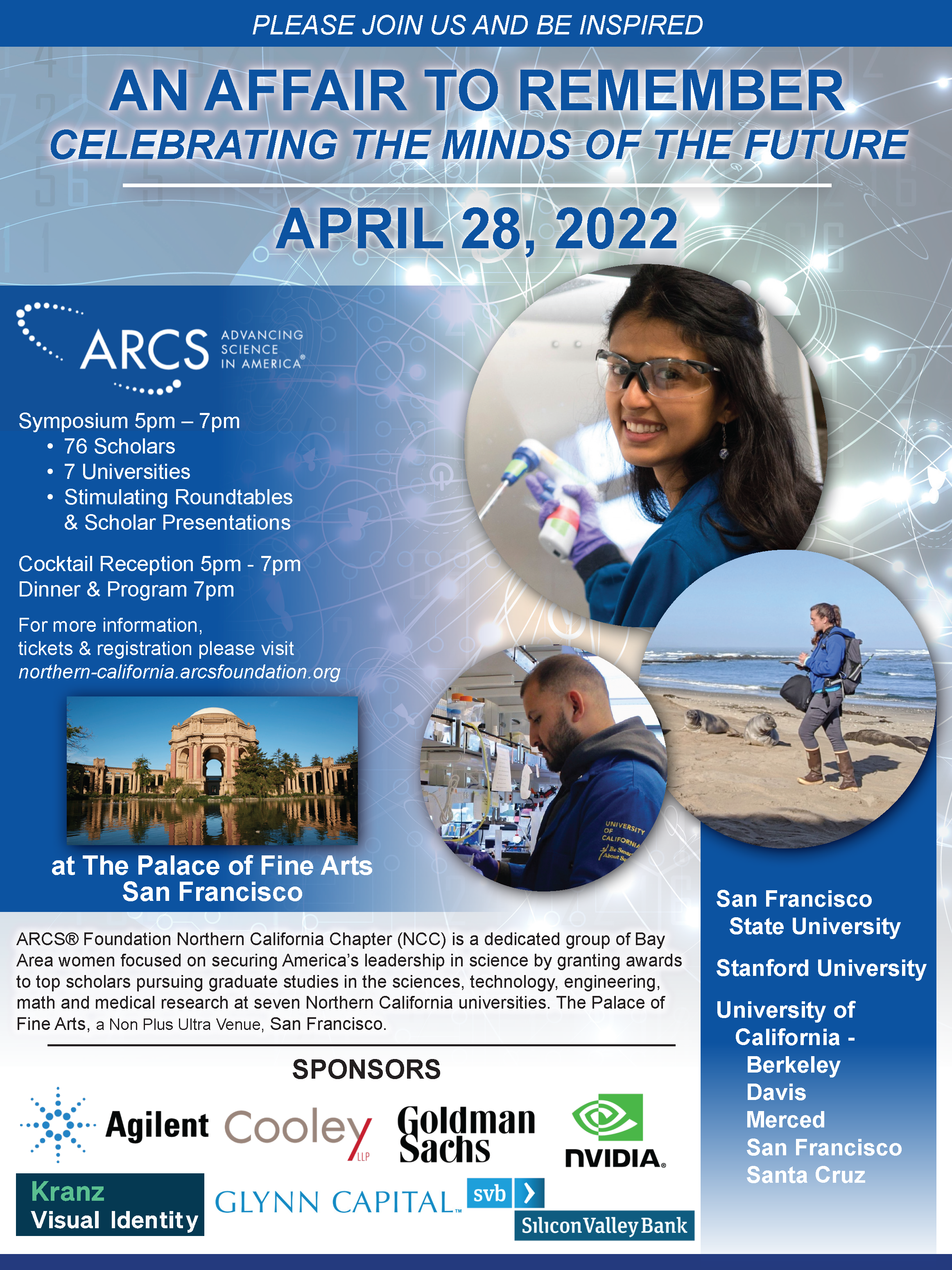 Since 1970, the Northern California Chapter has funded more than 2,900 Scholar Awards totaling over $23.6M. For the academic year 2021-22 the Chapter provided over $1m to 76 ARCS Scholars at six universities in Northern California (San Francisco State University, Stanford University, UC Berkeley, UC Davis, UC San Francisco, and UC Santa Cruz). Our latest university partner, UC Merced, will have ARCS Scholars in the 2022-23 academic year.